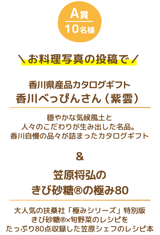 抽選で、香川県産カタログギフトorきび砂糖が当たる!